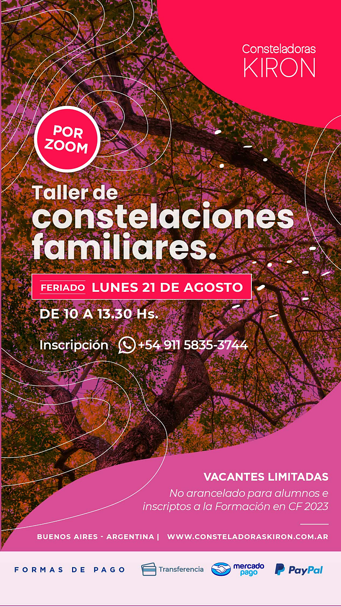 Taller de Constelaciones Familiares ONLINE - Mañana21 de agosto de 2023 - Zoom
